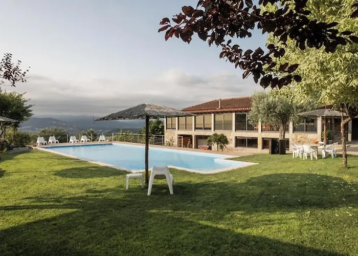 Η Quinta Da Raiz Βίλα Canedo de Basto διαθέτει βεράντα με θέα στο βουνό, καθώς και έχει πισίνα.